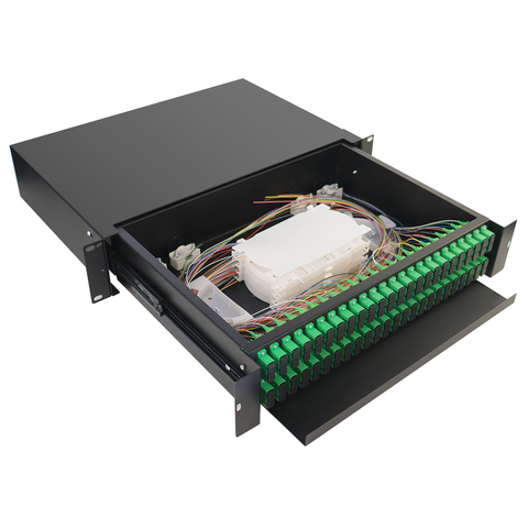แผงสายไฟเบอร์ออปติกแบบติดตั้งบนชั้นวาง sc/fc/st/lc ODF แกน144